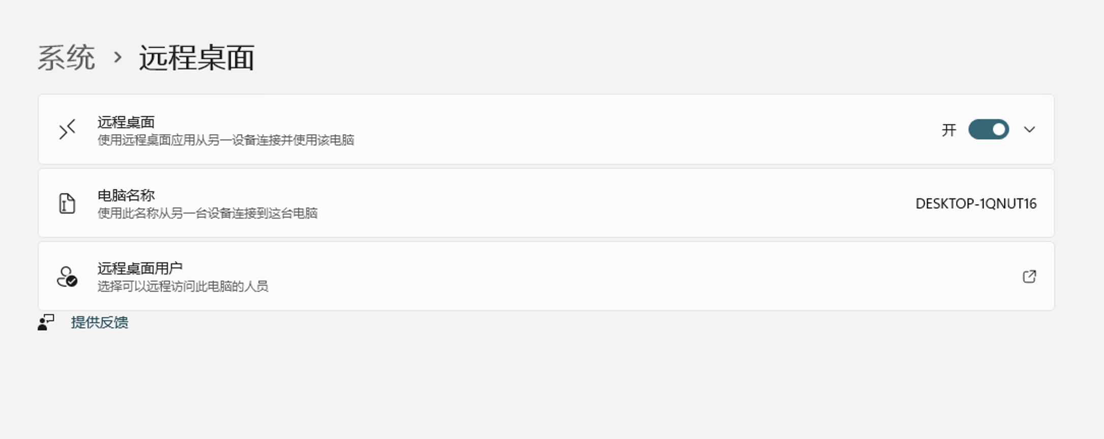 1、请首先确保Windows受控端打开了远程桌面。以win11为例,直接搜索“远程桌面设置”打开远程桌面选项即可。